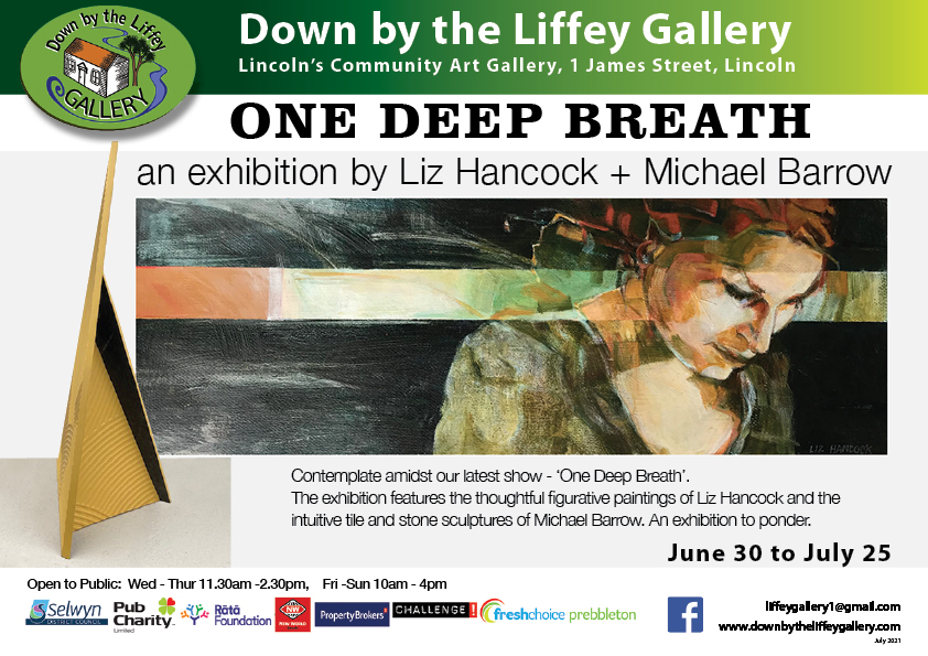 Contemplate amidst our latest show – “One Deep Breath”. The Exhibition features the thoughtful figurative paintings of Liz Hancock and the intuitive tile and stone sculptures of Michael Barrow. An exhibition to ponder.