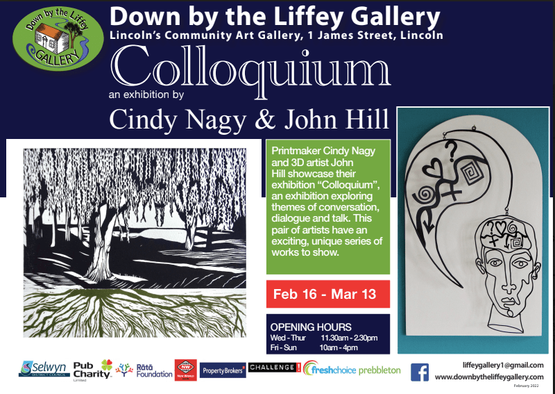 Colloquium February 16, 2022 downbytheliffeygallery Uncategorized Cindy Nagy & John Hill Printmaker Cindy Nagy and 3D artist John Hill showcase their exhibition ‘Colloquium’, an exhibition exploring themes of conversation, dialogue and talk. This pair of artists have an exciting, unique series of works to show.