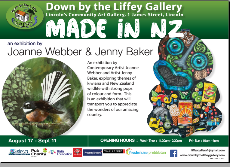 An exhibition by contemporary artist Joanne Webber and artist Jenny Baker, exploring themes of kiwiana and New Zealand wildlife with strong pops of colour and form. This is an exhibition that will transport you to appreciate the wonders of our amazing country.
