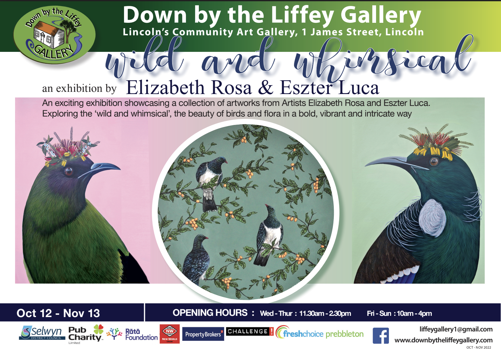 Wild and Whimsical October 10, 2022 downbytheliffeygallery Uncategorized Elizabeth Rosa & Eszter Luca An exciting exhibition showcasing a collection of artworks from artists Elizabeth Rosa and Eszter Luca. Exploring the ‘wild and whimsical’, the beauty of birds and flora in a bold, vibrant and intricate way.
