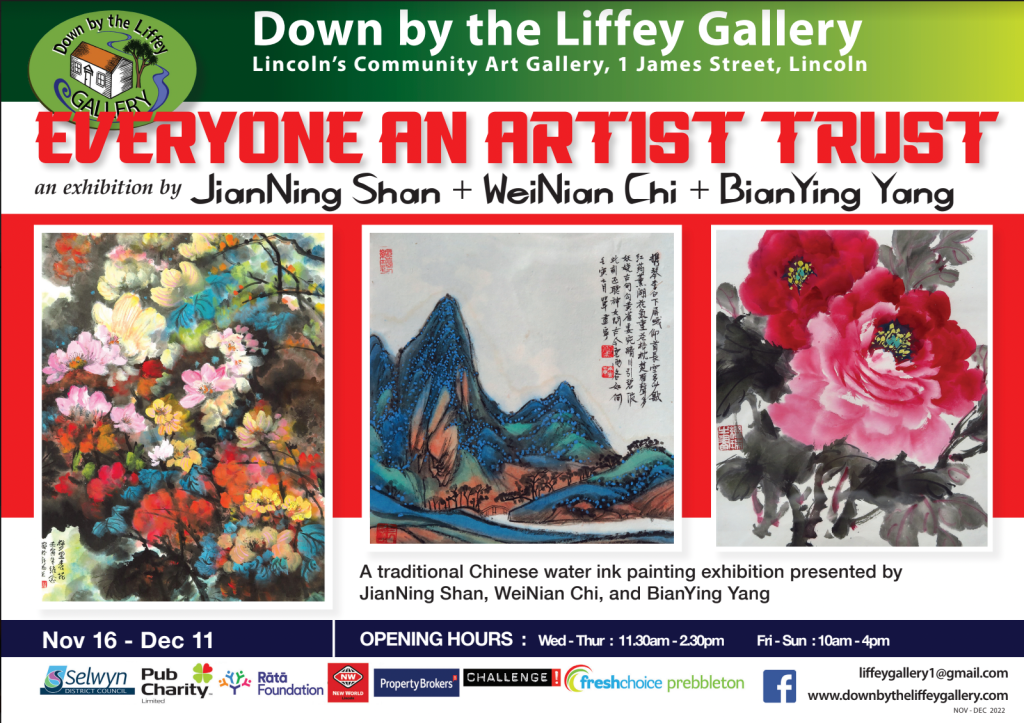 Everyone An Artist Trust November 19, 2022 downbytheliffeygallery Uncategorized JianNing Shan + WeiNian Chi + BianYing Yang A traditional Chinese water ink painting exhibition presented by JianNing Shan, WeiNian Chi and BianYing Yang.