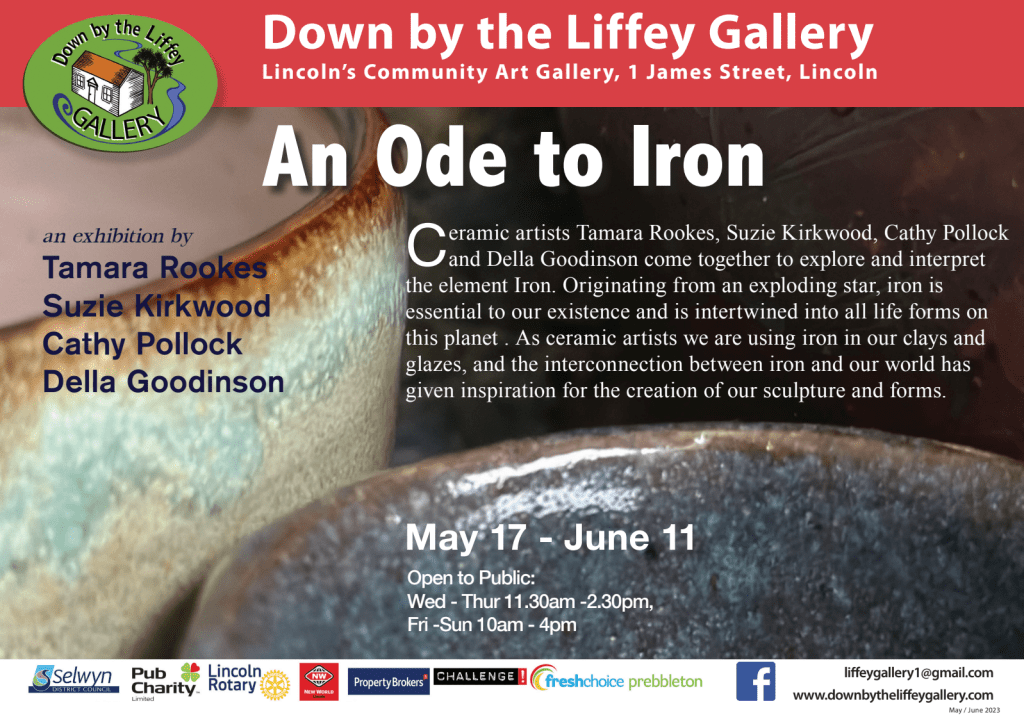 Ceramic artists Tamara Rookes, Susie Kirkwood, Cathy Pollock and Della Goodinson come together to explore and interpret the element Iron. Originating from an exploding star, iron is essential to our existence and is intertwined into all life forms on this planet. As ceramic artists, we are using iron in our clays and glazes, and the interconnection between iron and our world has given inspiration for the creation of our sculpture and forms.