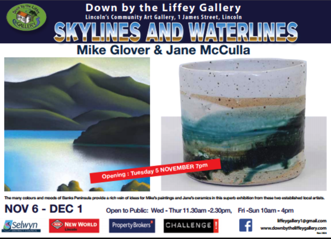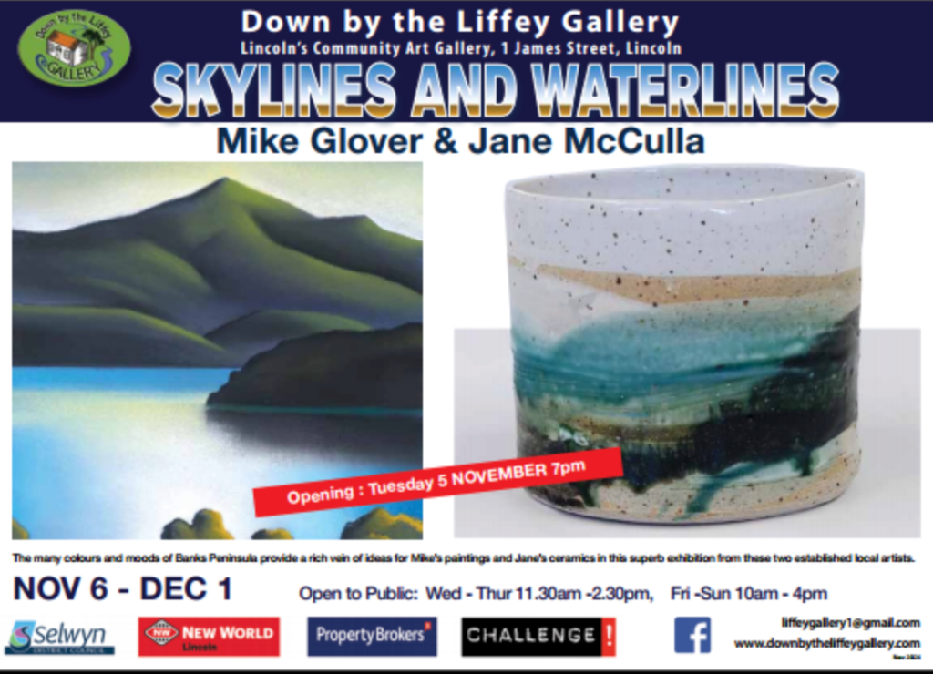 The many colours and moods of Banks Peninsula provide a rich vein of ideas for Mike’s paintings and Jane’s ceramics in this superb exhibition from these two established local artists.